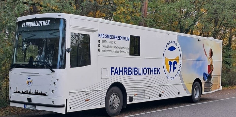 Die Fahrbibliothek, auch "Bücherbus" genannt, fährt auf sechzehn festgelegten Routen 120 Haltepunkte im 4-Wochen-Rhythmus an.